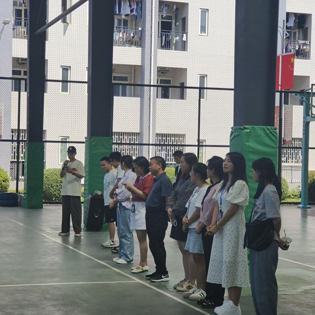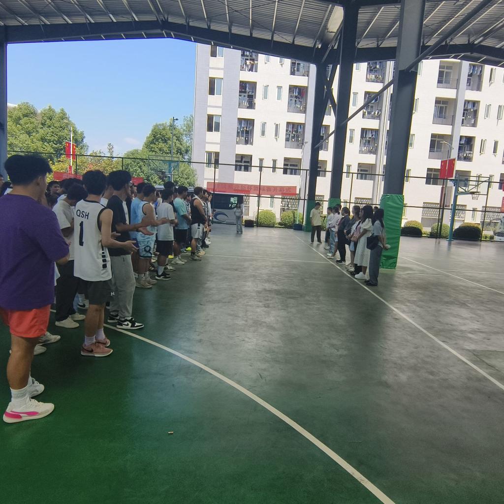 上午12时40分的时候,篮球场内外已是人头攒动,气氛热烈。来自各各班级的参赛队伍、师生代表及嘉宾朋友们齐聚一堂,共同见证了这一激动人心的时刻。篮球场内,五彩斑斓的横幅与标语悬挂在四周,篮球元素装点得处处洋溢着青春与活力,让人仿佛置身于篮球的海洋之中。