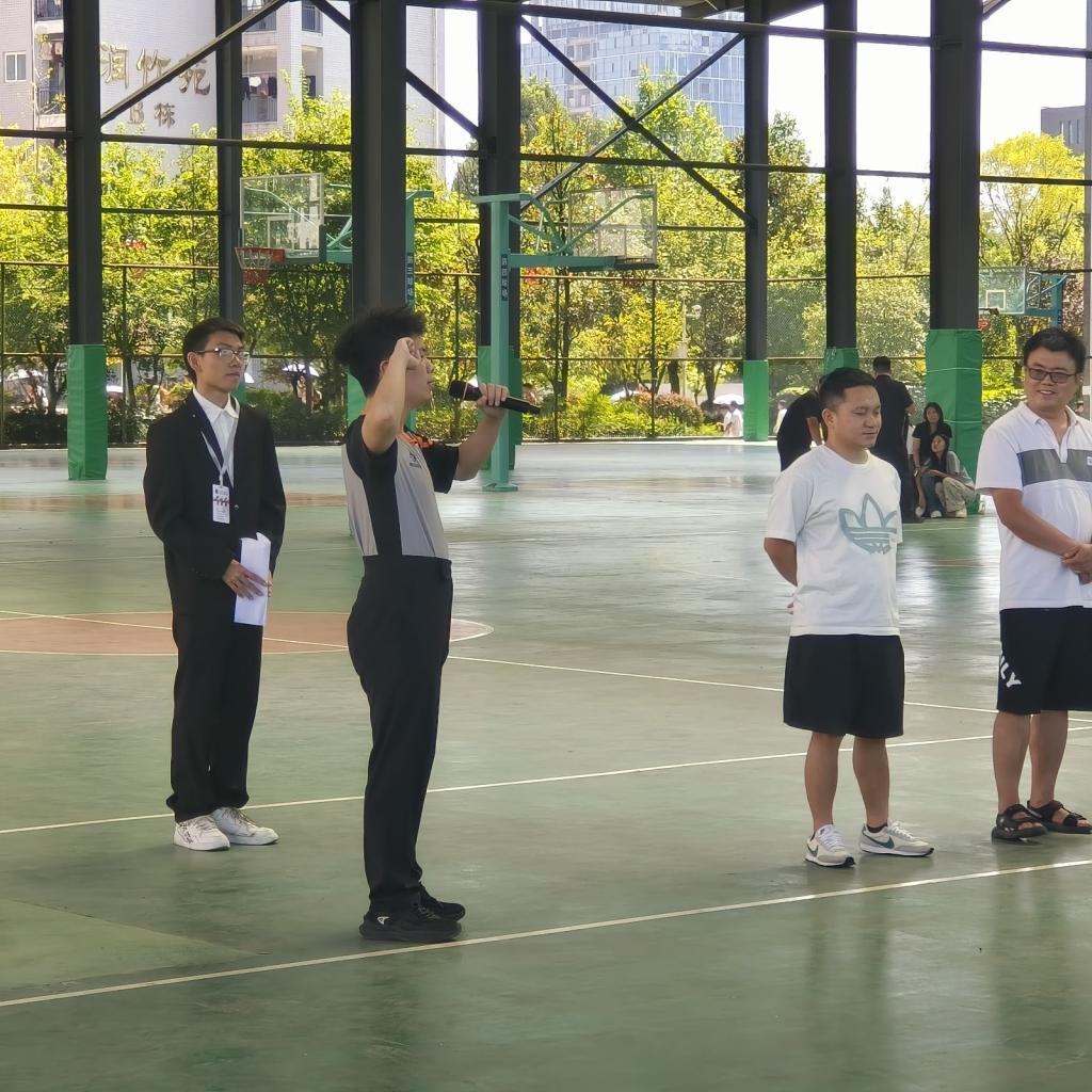 开幕式正式开始。随后,系主任及学生科科长发表了开幕致辞。他首先对远道而来的嘉宾表示热烈欢迎,并高度评价了篮球运动在学校体育文化建设中的重要作用。系主任强调:“篮球不仅是一项体育运动,更是团结协作、勇于拼搏精神的体现。希望全体参赛队员能够赛出风格、赛出水平,用汗水与激情诠释青春的意义,同时增进友谊,共同推动我校体育事业的蓬勃发展。