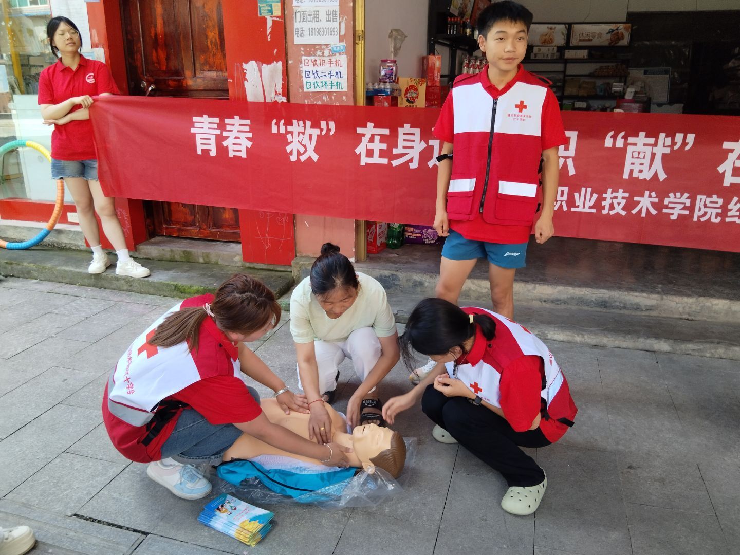 此外,同学们化身为青春“益起行”志愿服务队,围绕“预防艾滋病”“红十字救护知识”“法治宣传”与“推广普通话”这四个宣传主题,采用多种形式在集镇、农户家组织开展文化宣传服务。在预防艾滋病宣传中,通过播放科普视频、发放图文手册,深入浅出地讲解传播途径与预防方法,帮助村民消除恐惧与误解;红十字救护知识普及课上,队员们现场演示心肺复苏、包扎止血等技能,邀请村民实操练习,提升应急应对能力;法制宣传围绕土地纠纷、电信诈骗等农村常见法律问题,结合案例解读,增强村民的法律意识与维权观念;在推广普通话过程中,实践队员们深入村寨,挨家挨户进行走访宣传。实践队员们化身"推普小使者",走村入户发放宣传单,在欢声笑语中,村民们的学习热情被点燃,文明新风吹遍乡野。