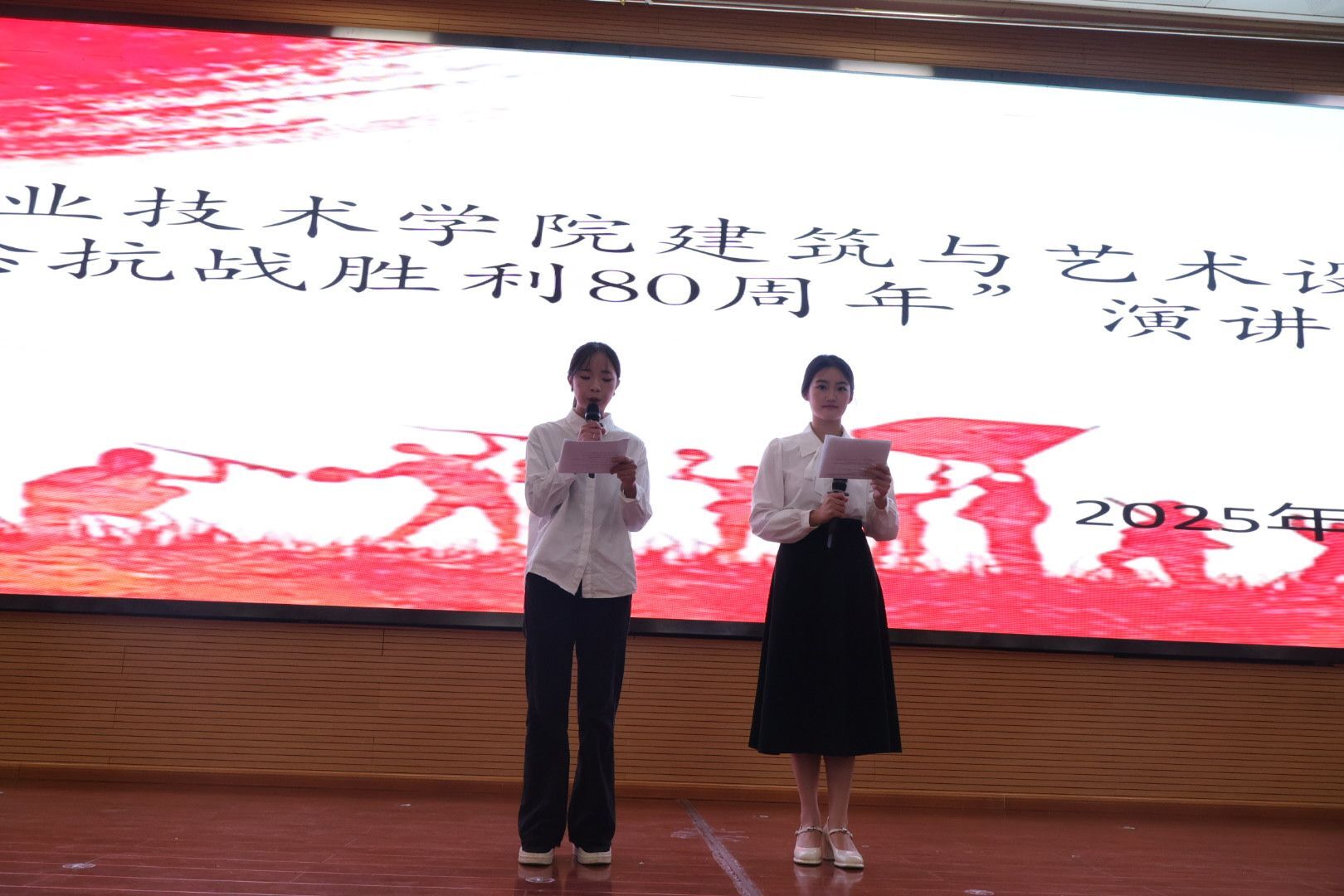 比赛中,同学们展现出对历史的深刻理解与时代思考,实现了从“知道历史”“理解历史”到“对话历史”的跨越。选手们不仅准确把握抗战历史的精神实质,更通过鲜活叙述与当代阐释,为这段红色记忆注入了新的时代内涵。