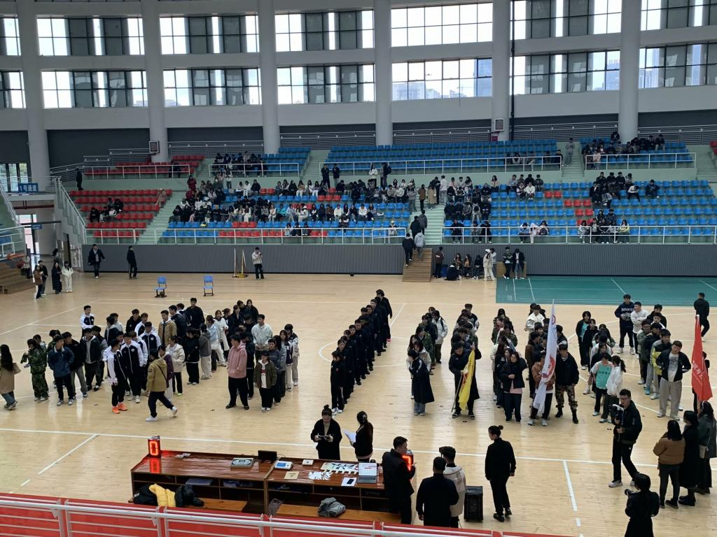 全体起立,奏唱国歌。国歌奏响,在这阴沉的天空下,庄重的旋律更显雄浑。师生们神情肃穆,用嘹亮的歌声表达对祖国的热爱。每一个音符都仿佛带着力量,在寒冷的空气中回荡,将体育赛事与爱国情怀紧密相连。