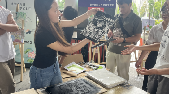 在我们“巧手绘廉”互动体验区大家可以写书签寄廉语,参与者绘制廉洁主题书签,书写格言互赠;版画印清风,学生指导居民体验版画制作,印制梅兰竹菊等清廉图案;胸牌表廉心,结合旅游专业服务细节,居民DIY廉洁承诺胸牌,现场佩戴留念。