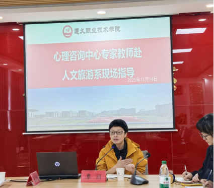 为提升人文旅游系学生心理健康工作质效,2025年11月14日,学院心理咨询中心覃丽博士专程赴系开展现场指导,为学生心理工作注入专业力量。